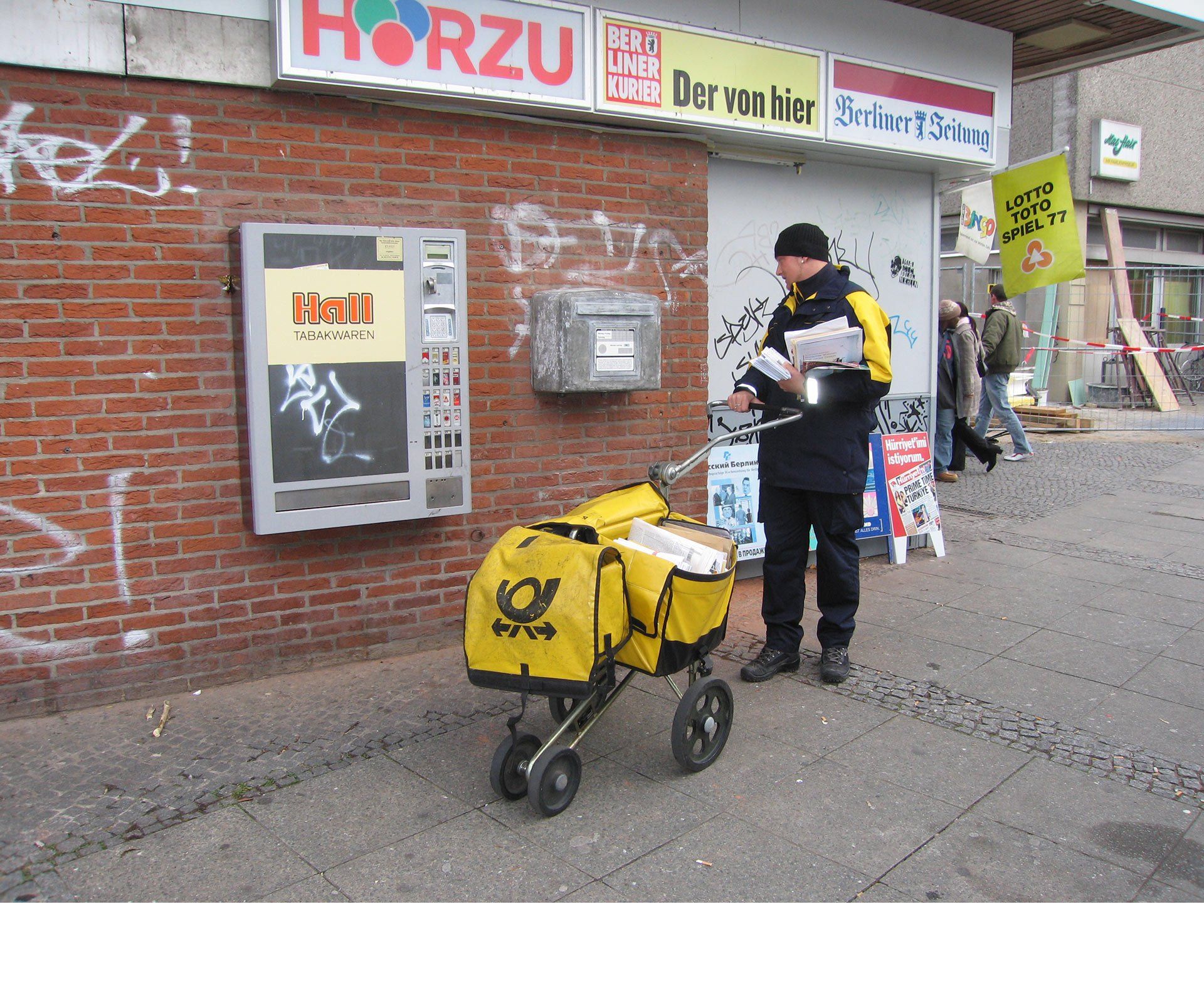 2003 (Weimar), 2004 (Berlin) Intervention in Public Space, concrete mailbox, sign with imprint
